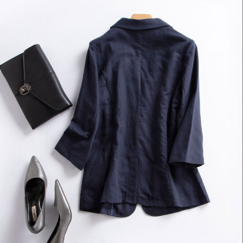There’s texture in restraint. The Gossamer Linen here is woven for movement, not perfection. Its soft creases, relaxed shape, and single-button closure offer quiet polish for women who lead without needing to announce it.