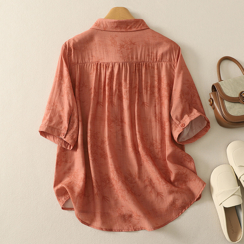 This breathable linen blouse captures the hush of wind through trees. Lightly structured yet softly flowing — for slow days, sunlit errands, and stories told in passing.