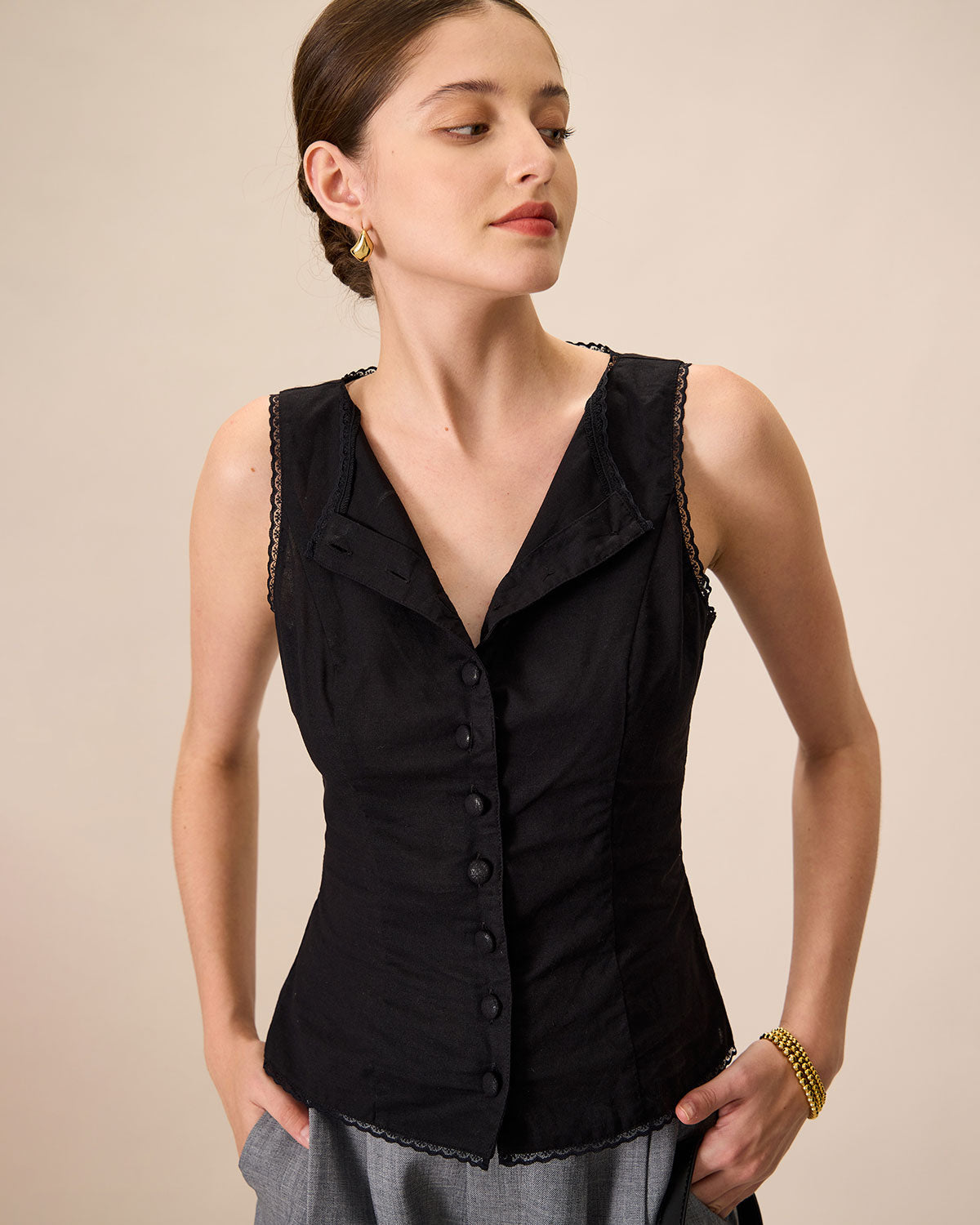 This Black Vest is made of Cotton and Linen. Cotton fabric features humidity balance, durability, and eco-friendly nature, feeling soft but not stiff when touching the skin. Linen is strong, naturally moth resistant, biodegradable and recyclable.